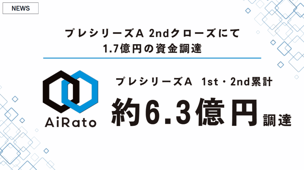 今回のラウンドには、新規投資家として三井住友海上キャピタル株式会社およびSMBCベンチャーキャピタル株式会社が参画しました。なお、1stクローズと2ndクローズを合わせたプレシリーズAラウンドでの累計調達額は6.3億円、創業以来の累計資金調達額は7.5億円となりました。