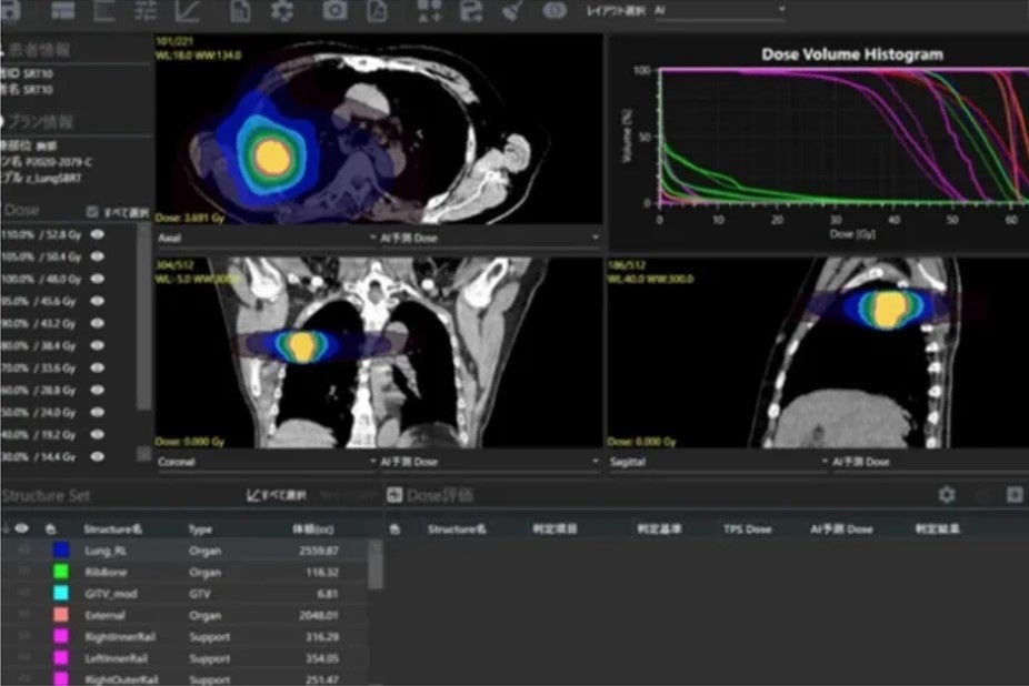 がんの三大治療法の一つである放射線治療は、患者負担が極めて少なく超高齢化社会のがん治療法として重要性がますます高まっています。その放射線治療において、最先端の治療法として強度変調放射線治療 (IMRT)※1が近年普及し、高い治療効果を発揮しています。IMRTは非常に優れた放射線治療法ですが、大きな課題が二つあります:①経験による治療成績のばらつき、②治療を行う医療スタッフの不足(およびそれに起因する過重労働)。これらの課題により、IMRTが想定ほど多くの患者に実施できていない状況が発生しています。そこで我々は、これらの課題をAIで解決する放射線治療計画AIソフトを開発・事業化し、世界と競える国内メーカーとなることを目指しています。このソフトを用いることで、腫瘍や正常組織の輪郭抽出※2、照射領域決定、安全性検証を自動かつ短時間で行うことができます。(従来6時間を要していた業務時間を10-20分に短縮します)放射線治療計画AIソフトは、高品質で安全な放射線治療計画を提供し、IMRTの可能性を拡大させます。